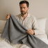 Луксозно Одеяло От Мериносова Вълна И Кашмир – 140/200 См | Тъмносиво С Фин Рибена Кост Мотив